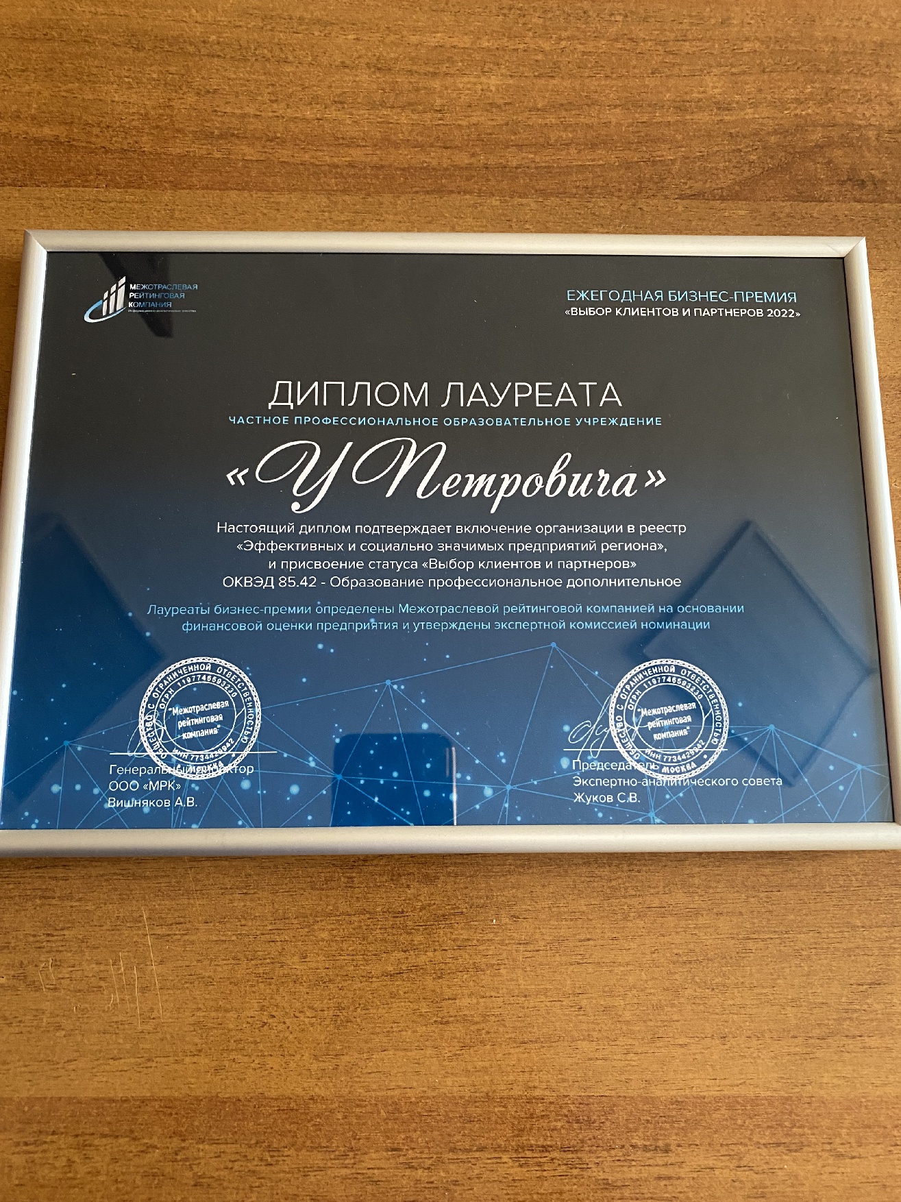 Автошколу "У Петровича" оценило московское аналитическое агентство "МРК". Усольская школа попала в рейтинг лучших компаний РФ. По результатам ежегодной финансово-экономической аналитики, ЧПОУ "У Петровича", включена в реестр эффективных и социально значимых предприятий и представлена к бизнес-премии "Выбор клиентов и партнеров 2022". Об этом сообщает информационно-аналитическое агентство "МРК". "Межотраслевая рейтинговая компания" ежегодно проводит аналитику для известных номинаций и конкурсов России, а также является учредителем бизнес-премии "Выбор клиентов и партнеров". Для усольской автошколы — это значимое событие. Основателем ЧПОУ "У Петровича" является Александр Петрович Рожаловский. Школа для будущих водителей в Усолье работает уже почти 20 лет. - Считаем для себя высоким достижением, что наше предприятие добилось высоких результатов. Усолье может нами гордиться, - говорит руководитель автошколы Ирина Александровна Рожаловская. Успех и общая цель сплачивает коллектив. В автошколе "У Петровича" трудятся 22 человека, один из них мобилизованный. Сплоченный коллектив — это основа, которая способствует эффективной работе. |
